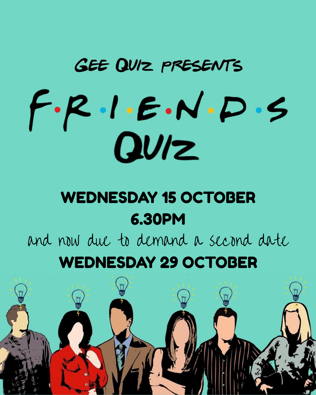 In what will be a frivolity-filled Friends fest, you and your team will face off against other Friends fanatics over five furious big screen rounds to battle for top spot and a flurry of fabulous prizes.